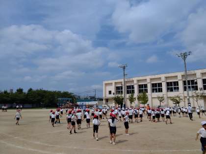 運動会の練習が終わったところです。