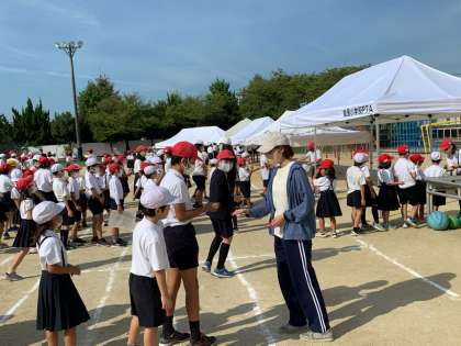 集会委員会の児童や先生達とじゃんけんをして勝つと、勝利の証(あかし)として色のついた紙を手に入れることができます。児童達は色のついた紙を手に入れようと、夢中になってじゃんけんをしていました。