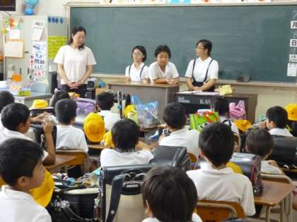 先ず、分団長が1年生を教室まで迎えに行き、集合場所の教室まで連れて行きます。人員点呼を行いメンバーの漏れのないことを確認します。
