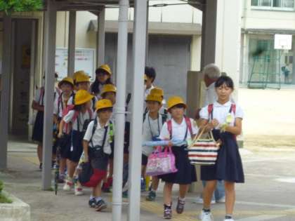 大型の台風が接近し、風雨が激しくなることを想定した集団下校です。