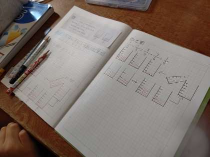 目標は、「異分母分数の加減計算の仕方を考え、理解することができる。」です。