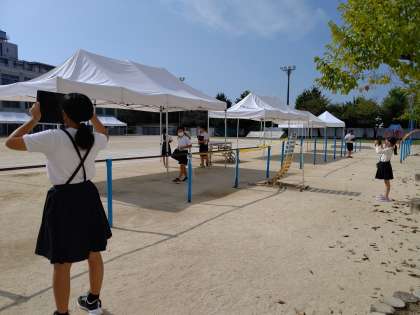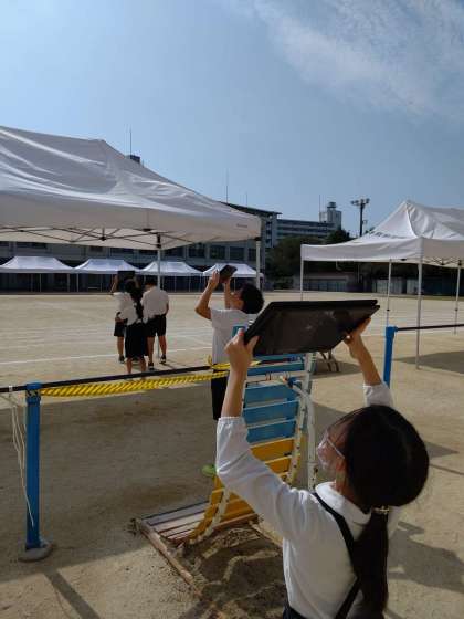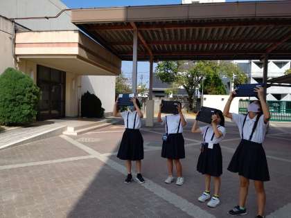 chromebookを使って、理科の雲の動きを調べようの学習で、雲の撮影をしています。