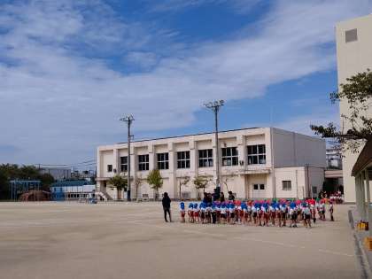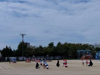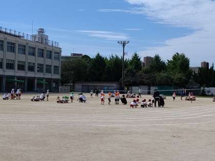 午前中に運動場で、豊里幼稚園の園児の皆さんが、今週末の土曜日に予定されています運動会の練習をされました。