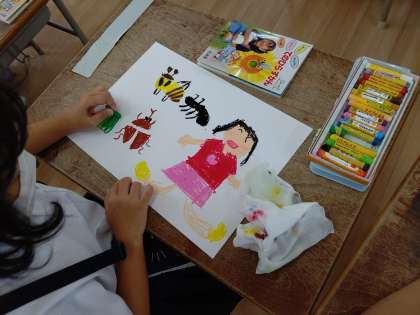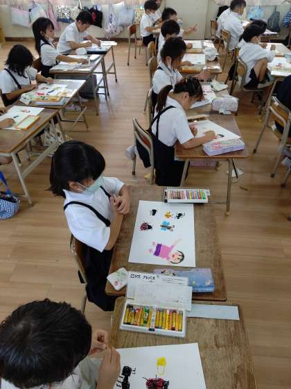 クレパスを使って、絵を描いています。