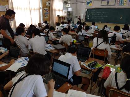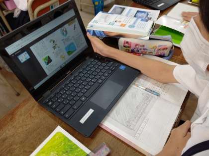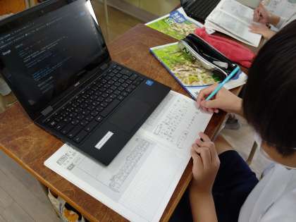 理科で、chromebookを使って、「雲のようすと天気の変化」の関係について、まとめをしています。