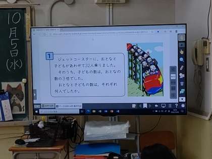 算数で、「図を使って考えよう」をめあてに学習しています。