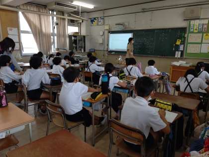 算数の習熟度別少人数授業で、「□を使った式を考えよう」の学習をしています。