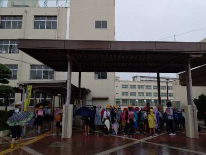 本日、3年生の秋の遠足で、海遊館に行きます。集合しています。