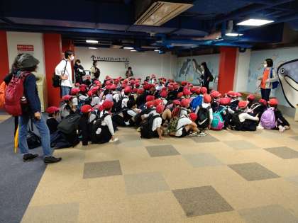 見学も終わり、雨ですので、館内のホールで、お弁当の説明を聞いています。