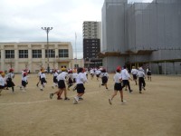 体育で、キックベースボールの練習をしています。