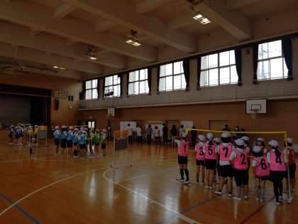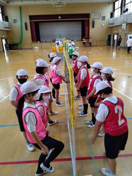 ネット型のボール運動であるソフトバレーボールの競技を行いました。