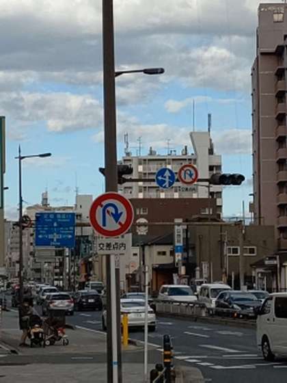 もうすぐ京阪本通1の交差点です。学校まで5分くらいです。