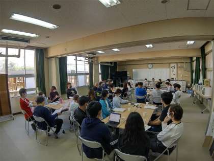 研究授業のあと、多目的室において、研究討議会を行いました。はじめに、学年の取り組みと授業者より説明がありました。