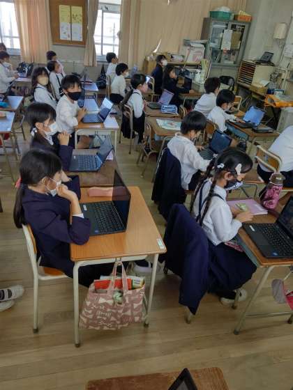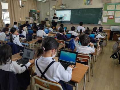 chromebookを使って、プレゼンテーションソフトのスライドの学習をしています。