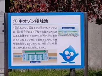中オゾン接触池の説明を聞いています。