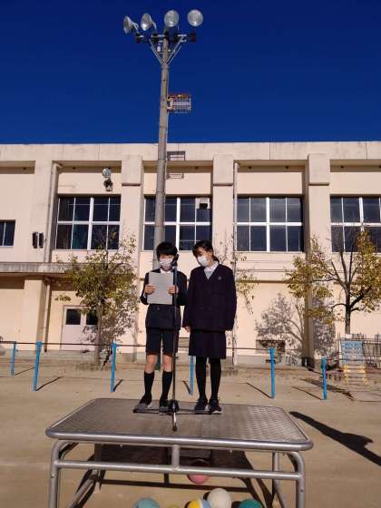 次に、児童会の児童より、「明日から3日間、赤い羽根共同募金になっています。そして、あいさつ運動になります。」と、お知らせをしてくれました。皆さん、ご協力お願いします。