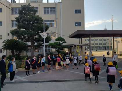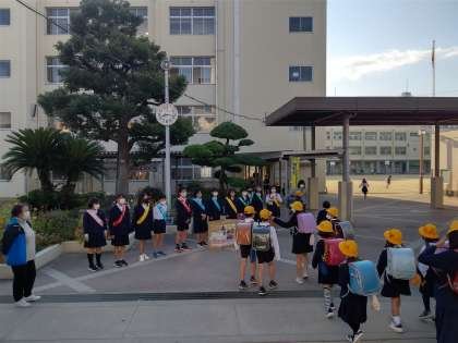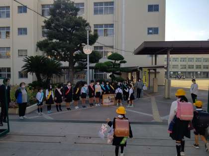希望者があいさつレンジャーとしてあいさつを頑張っています。