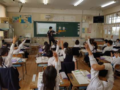 5時間目に1年3組で、1年生の算数科の実践授業を行いました。