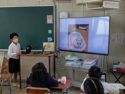 理科で、chromebookを使って、スライドでプレゼン発表をしています。
