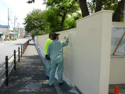 正門から給食室通用門までのブロック塀がきれいなクリーム色に塗り替えられました。