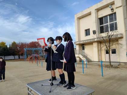 次に児童会から【あいさつ運動の時に行いました、赤い羽根共同募金のお礼が届いています。皆さんご協力ありがとうございました。】とお話がありました。