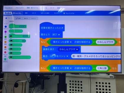 chromebookを使って、プログラミングソフトのロボブロックスにログインして、ペッパーの胸のタブレットに画像や文字を表示させるプログラムを考えています。