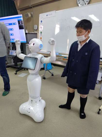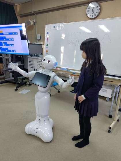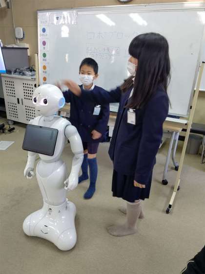 chromebookを使って、プログラミングソフトのロボブロックスにログインして、「わたしはだれでしょう?」のクイズを作り、発表しています。