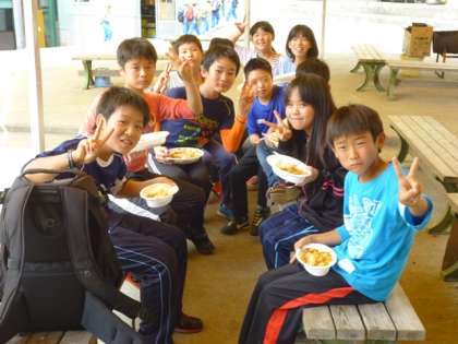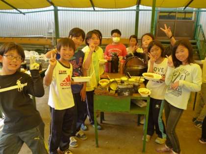 ●少々ニンジンが固かろうが、少々お水が多かろうが、少々ご飯にオコゲが混じろうが…(笑)自分たちで作り、野外で、みんなと食べれば全てがご馳走です。