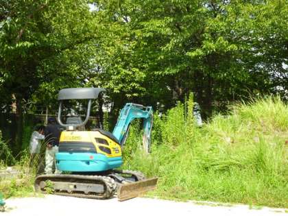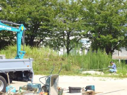 地域の方のご尽力で進められている校庭の「芝生化」工事が始まりました。