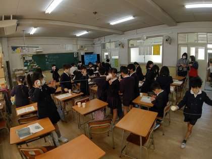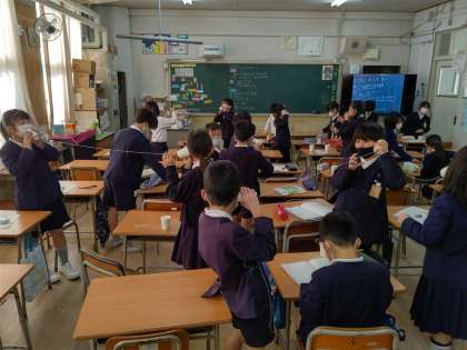 理科で、「音が伝わるとき」の実験を糸電話で行いました。