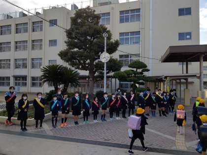 今週は、あいさつ週間になっています。あいさつレンジャーの皆さんが、登校してくる児童を「おはようございます!」と元気よく迎えてくれています。