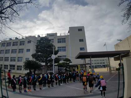 今週は、あいさつ週間になっています。あいさつレンジャーの皆さんが、登校してくる児童を「おはようございます!」と元気よく迎えてくれています。