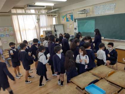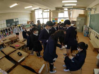 5時間目にたてわり班教室に全校児童が分かれて、「卒業をお祝いする会」を行いました。
