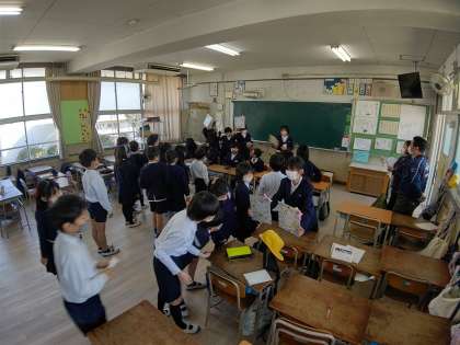 5時間目にたてわり班教室に全校児童が分かれて、「卒業をお祝いする会」を行いました。