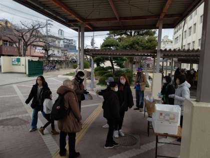 豊里地域のこども110番の家や防災スポットを探検に班ごとに出発しました。