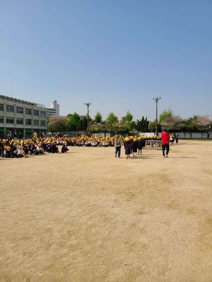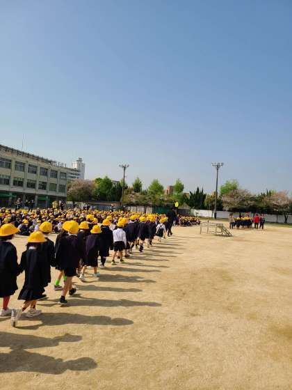 2年生から6年生のみなさんが、あたたかい拍手で、1年生を迎えました。