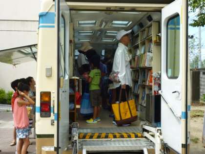 本校の体育館前に「自動車文庫」が巡回してきます。