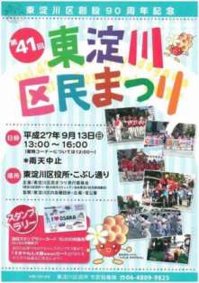 9月13日の日曜日「第41回 東淀川区民まつり」が開催されます。