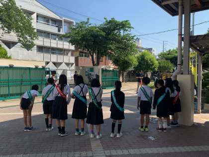 代表委員会と有志の児童が、通用門のところで元気よくあいさつをしました。