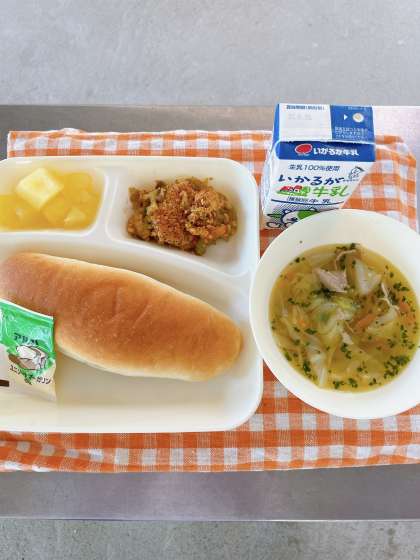 一年生は、自分で配膳しているクラスもあり、上手にしていました。