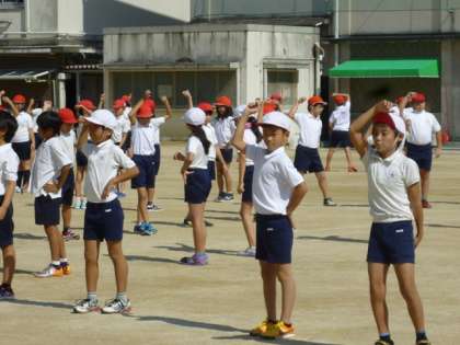 先ずは、全員そろってのラジオ体操、しっかり体をほぐします。
