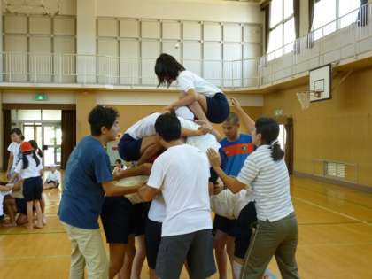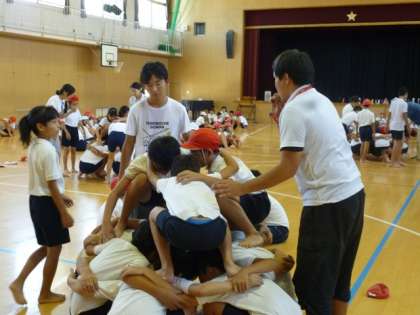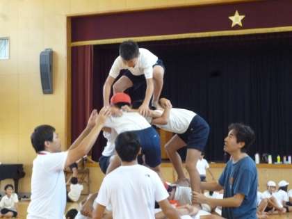 練習終了後、今年度の組み体操の意義を6年生に伝えました。