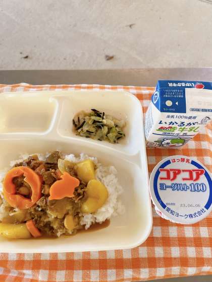 それは、肉にタンパク質が多く含まれているからです。タンパク質には、体を作る働きがあります。今日は、動物の形をしたラッキーニンジンが入っていました。今日も