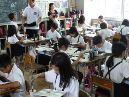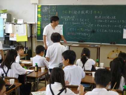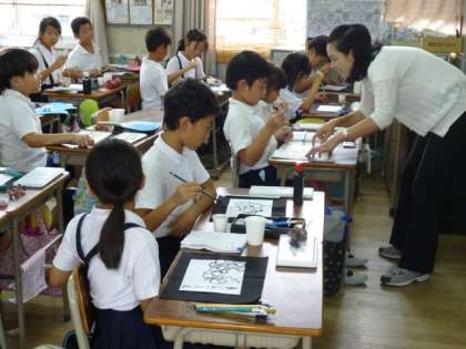 図工:うちわづくり 「普段の感謝の気持ちを絵手紙に込めて」