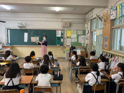 えほんばたけの方たちが、2年生の児童に絵本の読み聞かせをしてくださりました。児童は、絵本のお話に夢中になっていました。