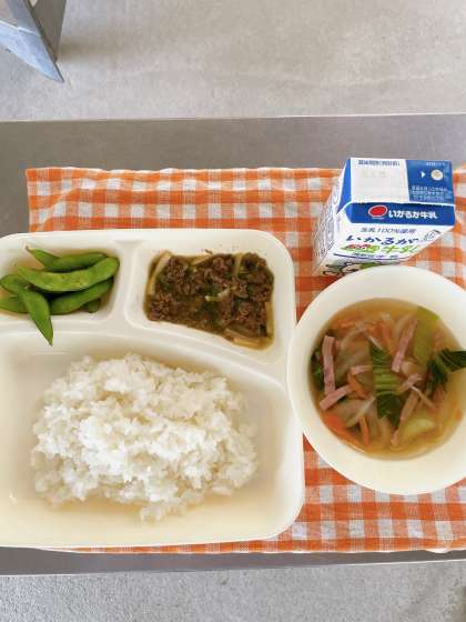 牛肉とピーマンやたけのこなどをいため、さとうやしょうゆ、オイスターソースなどで味つけしています。