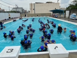 健康観察カード(記入、サインは必ず)、水着、水泳帽、バスタオル、サンダル等入水に必要なものは必ず持たせてください。