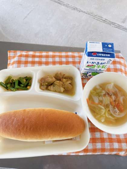 タンパク質や炭水化物、骨や歯を丈夫にするカルシウム、おなかの調子を整える食物せんいなども含まれています。今日は、豆が多い献立でしたが美味しくいただきました♪