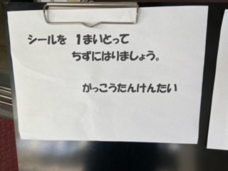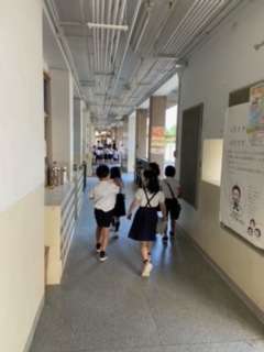 2年生が1年生に学校のたくさんの教室や部屋の説明をしています。