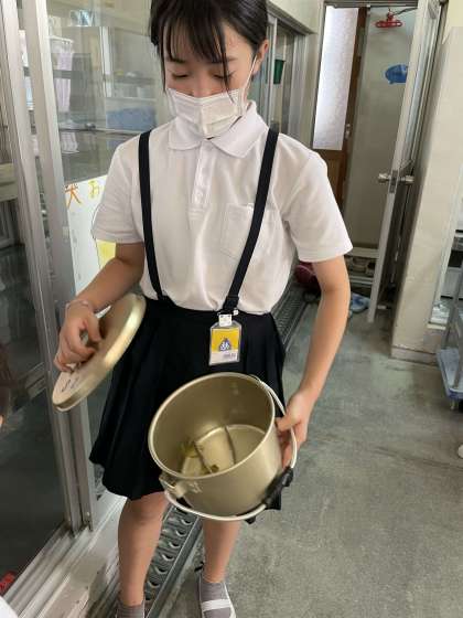 給食時間もいつもより余裕があり、味わって食べていました。食べ終わった後、給食委員会が残食チェックをしました。